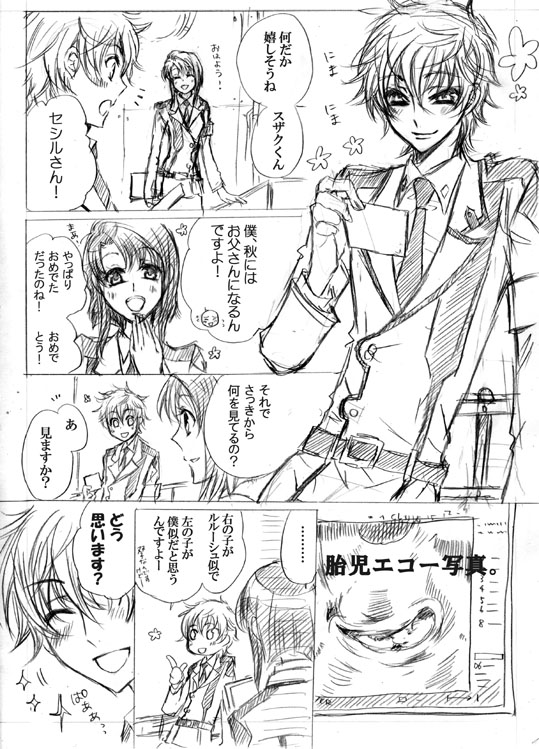 親馬鹿&天然さんめ!(笑)Posted by 水流 2009/01/26(Mon) 22:53:15 EDIT エコー写真見て笑っているスザクさんが、親馬鹿全開してて笑ってしまいました。