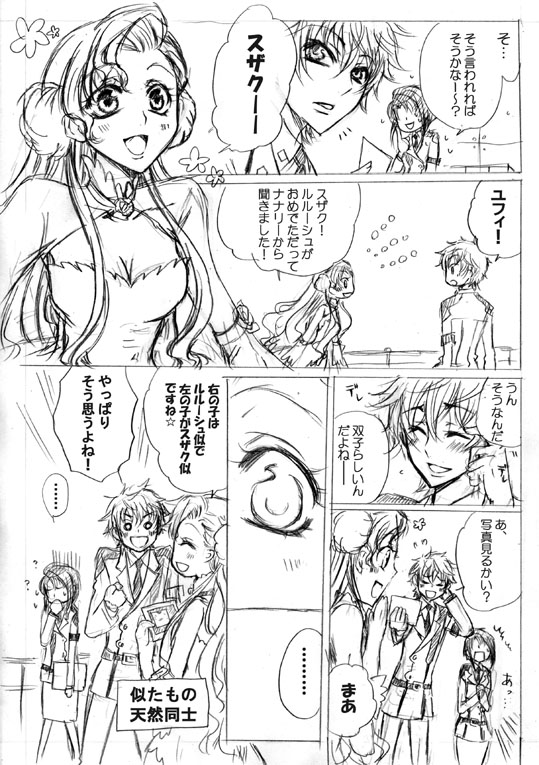 次、ラストです。 このブログで初めてユフィを描きました。 基本的にスザクとルルしか描いてないからなーー……。 愛故に。。。 あ、「HONEY WEDDING」を虎の穴さんに追納しました。 ご利用の方は宜しくお願い致します。これがラストです。 PR Comments無題Posted by 季山ごま 2009/01/26(Mon) 20:32:11 EDIT はじめまして十六様。