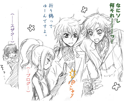 館内放送やBGM紹介の声がルルの中の人だったので、 びっくりしましたねー。 全国大会スゲー。 当スペースまで来て下さった方、有難うございました!! 今回は新刊がないにも拘わらず、 たくさんの方が話しかけて下さって とても楽しかったです☆ ペーパーも「ご自由にお取り下さい」とか言っておいて 途中からなくなってスミマセン。 目算ミスでした。 スケブ。。。たくさん描かせて頂きました! 1枚を除き全部「スザルルで!」との事。。。(゜o゜) 2人描くって難しいのですが(私的に…) 頑張ったつもりです…(私的に…) 差し入れとお手紙もありがとうございます。 大切に読ませて頂きます。 他にも感想等教えて下さって有り難いやら恥ずかしいやら…。 あと、今回、私が静岡で同人やってた時から、 本を読んで下さっているという奇特な方に出会いました…。 嬉しいのですが……いたたまれない…。 何年前だ…。 もぅ…忘れて下さい…。 2008.02.17 Sun 16:15:24 世界でいちばんルルが好き!『世界でいちばんルルが好き!』